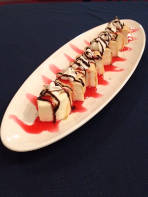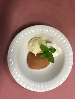 Dessert Lemon Yogurt Crêpe Based on a Japanese recipe, this delicious dessert with its soft delicate texture is light enough to fit into any meal! 8.00 Poached Pear Red wine poached pear with ice cream. 8.50 * Granny Apple Betty Warm apple pie with caramel apple toppings. 8.00 * Kahlua Chocolate Toffee Mousse Rich chocolate mousse with chocolate toppings. 8.00 * Peanut Butter Pie Homemade whipped peanut butter pie with graham cracker crust. 6.50 * Cheesecake N.Y.style cheesecake with your choice of syrup topping. 6.50 * Ice Cream Vanilla or Chocolate Single Scoop 3.50 Double Scoop 5.00 Green Tea Single Scoop 5.00 Double Scoop 6.50